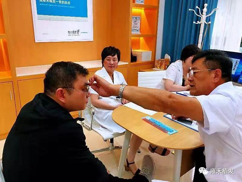 当然,他不是前来歌唱,而是问诊植发。辉仔的部分头发和眉毛有些稀疏,需要加密一下,而这只能靠植发。但他的植发具有复杂性,一是小时候严重摔伤现在面部肌肉萎缩,二是刚刚做过脂肪填充术,做植发还要过“整形关”和“皮肤关”,这就需要跨科室的会诊。当天的会诊除了雍禾的植发专家,还有杭州整形医院的专家和上海九院的皮肤科专家。一个发友的会诊还得请其它医院的知名专家,这在雍禾的植发史上难得一见。