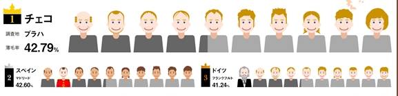 日本之前有一项关于世界各国秃头几率的调查,这项结果欧洲国家可以说是“大获全胜”,在秃头率最高的榜单前10名,都被欧洲国家宝包揽,并且这项调查还公布了一个秃顶的世界地图。