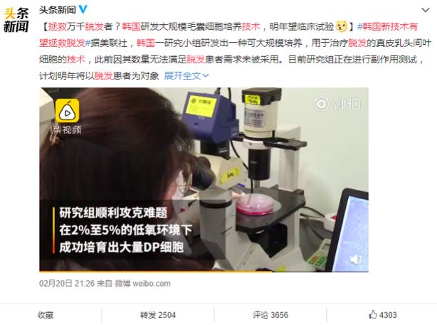 而几天前,韩国一研发小组也研发出一种可大规模培养,用于治疗脱发的真皮乳头间叶细胞的技术,计划明年即2020年以脱发患者为对象进行实验