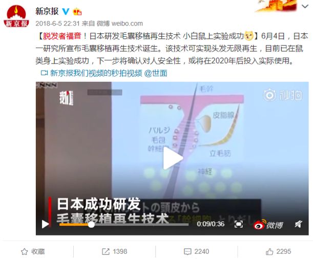 随着脱发成为国际性问题时,最最关心这一问题的不是脱发人群,而是那些搞科研的技术猿,想必很多关心治脱前沿的发友们也通过一些渠道了解到过类似振奋人心的消息: