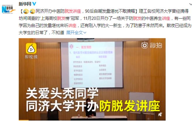 前两天同济大学开办中医防脱发讲座又上了热搜