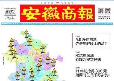 (2016年1月26日《安徽商报》报道何首乌治脱发夺走人命的截图)