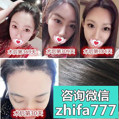 【术后30天~369天恢复过程】:我觉得自己的头发长的蛮快滴,术后一个月左右脱落的头发开始慢慢长回来了,二个月时候长度大概已经有一指左右了,术后一年左右,我的发际线是长好了,把头发撸上去,额头饱满又光洁,而且我依旧是一个柔柔的妹子。