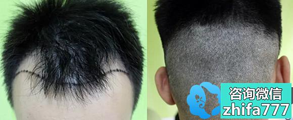 植发后两天,植发区和取发区红肿已经消退,过两天再清洗了血痂效果会更好,另外,取发处的伤口也恢复了很多,等头发长出来,就会完全看不见痕迹了。