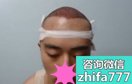 大概用了5个小时,我的植发手术就全部完成了。刚种植好的区域,密密麻麻都是出血点,不过没感觉到疼,可能是麻药还没散吧。这次露个正脸吧,看着很帅吧,哈哈。