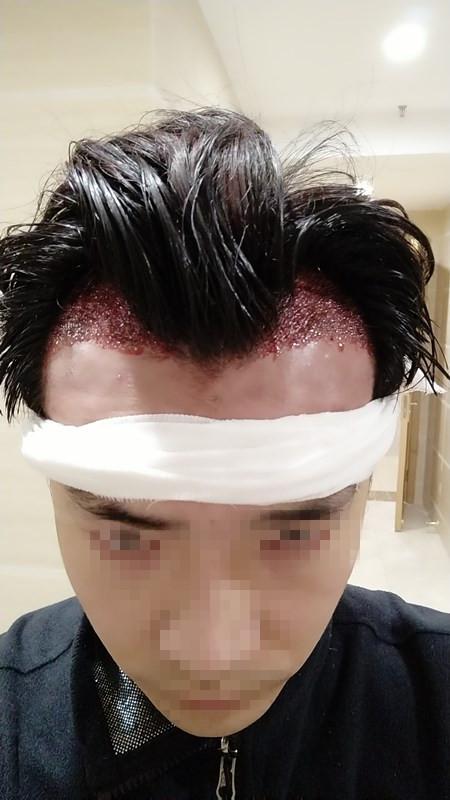 周末见到几位过来刚手术完的发友和植完发一段时间过来保养的发友,看着效果都还不错,于是就定了周三过来手术,交钱验血。现在回想起来好像一切都挺顺理成章的。周三早上过来,画植发区、拍照、进手术室,我倒是不算紧张,进手术室前小姐姐送来两片药和巧克力,估计都是镇定缓解压力的作用。进手术室,先趴着取后枕部毛囊,约莫打了20针麻药,开始稍微有点疼的,后来就麻木了,一个小时左右取完毛囊。翻身做毛囊定位,之后让我起身看了下盘子里的毛囊,2000单位排列挺整齐。再次躺下额角打麻药,种毛囊时间久些,估计两个小时左右,中间我睡着了。醒来基本就完工了,包扎好吃饭休息。9:30进手术室,下午2点多出来。多少会有些不舒服,但也没有特别不适,晚上睡得挺好,九点多就睡了。
