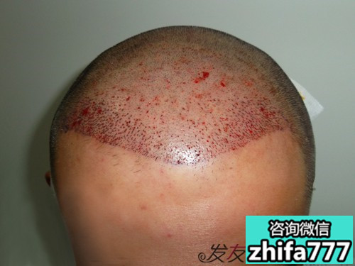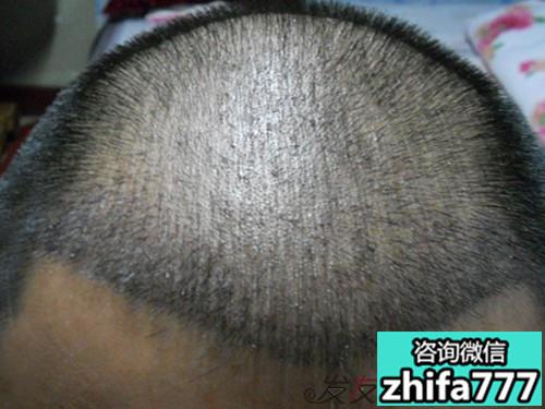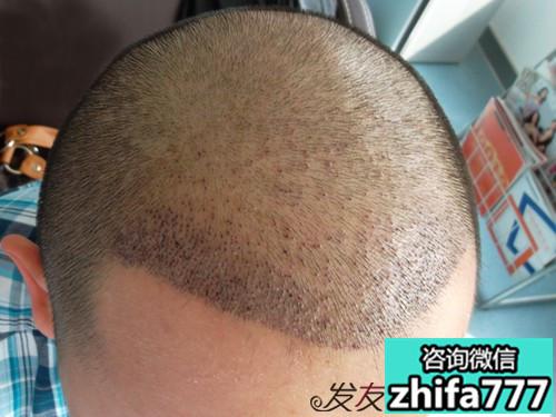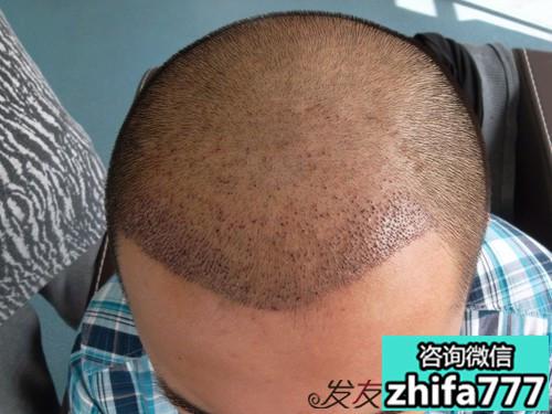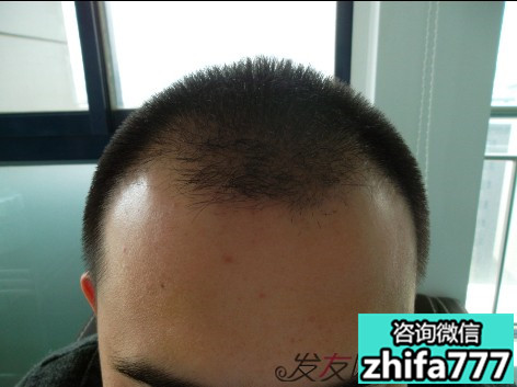 植后半个月的,现在,前额的头发长出了1公分的样子,以前的肿痛、麻木感早已经消失了,就是大概植发后一周的时候,前额的小血痂彻底掉光。可能新头发要生长,那时候有点痒的感觉,医生说这是正常现象,感觉头发有长有掉的。后面的头发没啥异常,也发 一张吧。