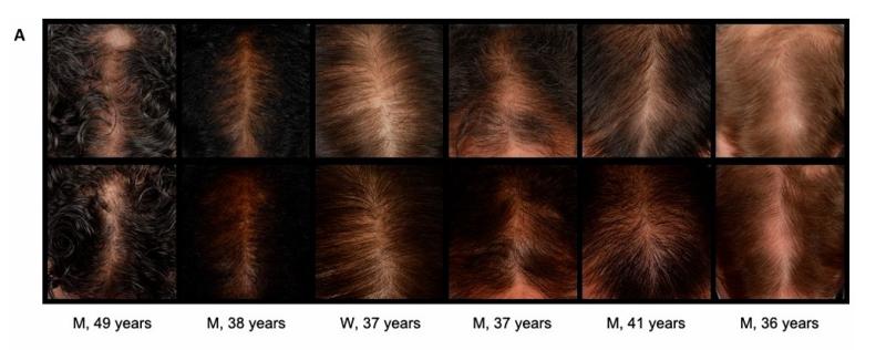 2023年,该团队还在《J Clin Med》上发表了一项为期9个月的单臂双盲研究结果,其治疗 9 个月后,毛发生长增加高达 32.5%,治疗有效率达 85%,证实了HIF-1α 激动剂可促进雄激素性脱发患者头发生长。