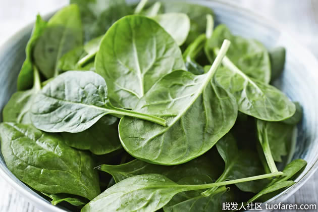 菠菜富含维生素A, B和C,铁,镁,叶酸和其他营养物质。这些在保持头发健康,使其更强壮,帮助头发再生过程中扮演着重要的角色。