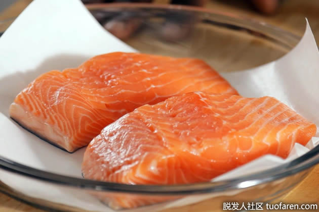 富含脂肪的鱼类所含的-3脂肪酸有助于头发生长和减少脱落。这些鱼还含有硒,蛋白质,维生素B和D3——所有这些都有助于加强你的头发,减少脱发。