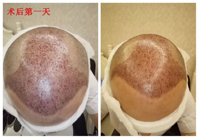 今天是第7天了,植发区没任何不适感觉,但后面还是紧梆梆的,睡觉压着还是痛,后面血钾不少,洗都洗不掉