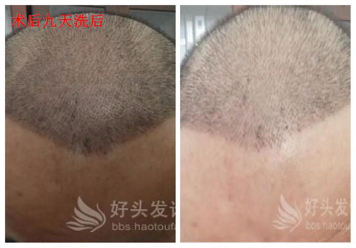 今天第九天了,昨天去清理了血钾,现在植发区有点痒,取发区有点痛,上图片