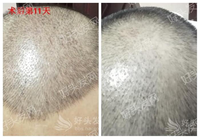 今天第12天,植发区还是痒,取发区痛感很少了,睡觉压着还是有点痛,后面还是红,这几天一直涂碘伏,暂时没毛囊炎