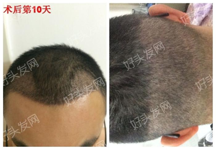 2016年10月13日:植发后第10天,后脑勺除了头发短点,基本上看不出来了。前额效果很满意,坐等狂脱期。