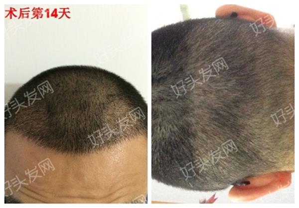 2016年10月17日:植发后第14天,植发区域头发感觉还是长了些,每天早晚冲洗一遍,没有特地去血痂基本上也干净了。周末剪了一次头发,全部剪成6mm了,和植发区弄一样长