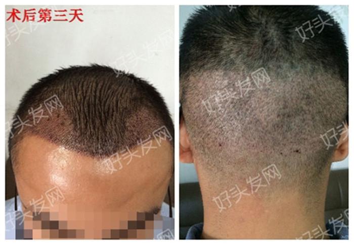 2016年10月3日:植发后第3天,自己喷了洗发香波,然后用水冲洗了,不能用手去碰头发。依旧1-2h定时在植发区喷营养液,喷完为止。