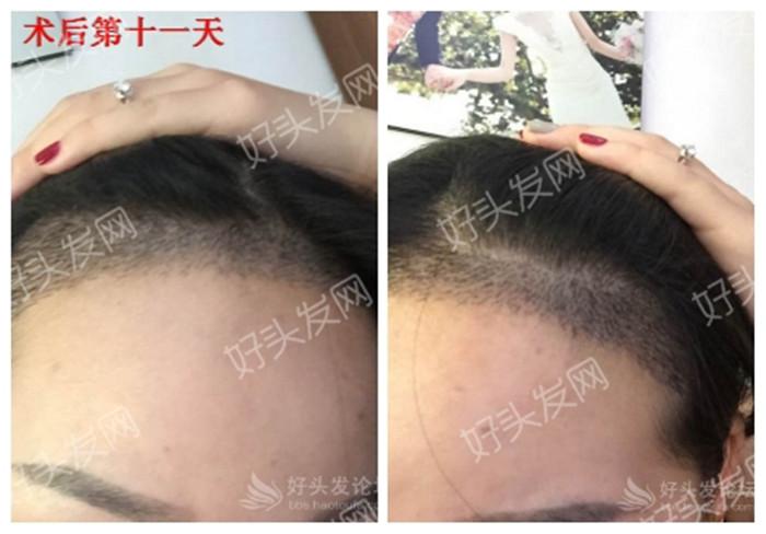 终于到了十一天的时候,血痂终于清理的差不多了。医生还打电话回来说可以开始用米诺地尔了,头发会长的好一些。