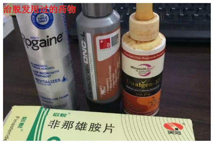 直到2011年才知道了保发止和米诺地尔可以控制脱发!于是在某宝上买了印度产的保发止还有5%的可兰!内服外用10个月左右后,情况的确有一定的改善,于是继续吃药。在2012年的时候,某宝上药品类比较严格了,改服国产启悦。同时5%的可兰会导致头皮会很痒,于是开始改用15%的Dualgen-15,在淘宝不良商家的忽悠下说不会导致头痒,而且可以浓度更高,可以更好更快的生长!