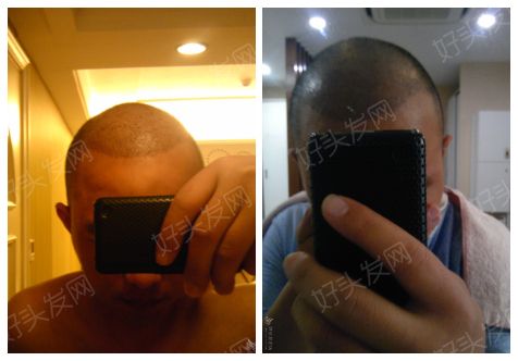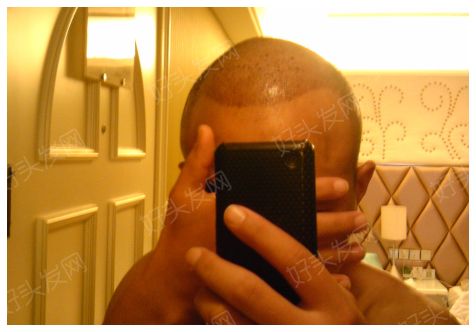 6月6号术后第五天,上午去清洗血痂,护士态度很好,清洗后干净舒适多了,出门不戴防尘帽,依旧是没什么异常,种植区依旧是麻木的。戴着防尘帽去了朋友住处。晚上没戴防尘帽只带着口罩去吃晚饭,这是近几年来第一次不用带着假发或帽子出门了,那种感觉真的就是重生的感觉,虽然还不到较终的效果但内心还是很喜悦得,这种感觉只有亲身经历的人才能深刻感受到。