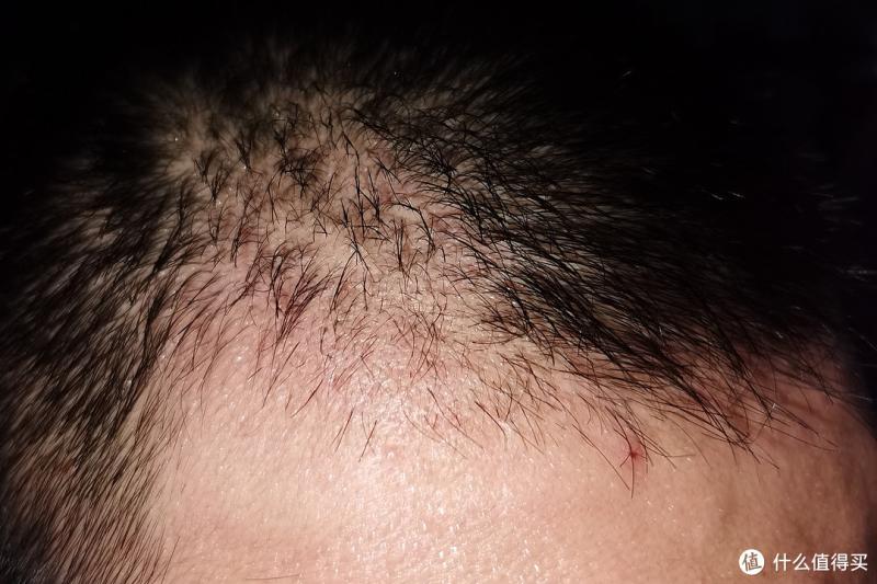 可以看到干净了很多。但是血痂角质一次清洗不干净。接下来的十多天,自己按照机构教的方法,一点点轻柔的继续清洗。在这个过程中头发会生长,但是很快就要进入脱落期(置换期)