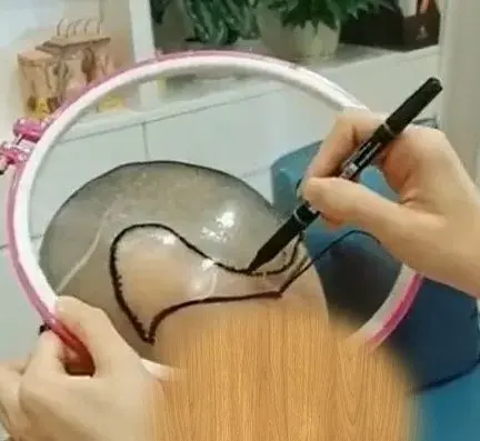 一般现在头上画出需要植发的面积,然后再画到图下这个膜上,接着在一个方格纸上算出需要植多少毛囊单位。
