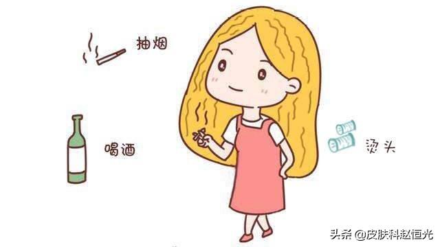 男性朋友爱好抽烟,朋友聚会或应酬难免会喝酒。女性朋友则喜欢烫染头发,这些都会引起脱发。尽量控制抽烟喝酒频率,能戒就戒,烫染头发至少隔半年以上进行一次。
