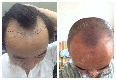 今天去医院洗头了,第一次没有清理干净,医生说大约半个月才能洗干净。也希望植发成功的发友多给点宝贵意见,后期的护理和饮食等各方面。第十天我再跟新。