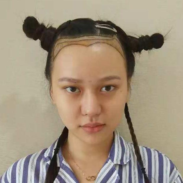 手术一个月之后种植头发的地方已经长出了许多小绒毛,我剪了个刘海,这样旁人也就看不出来我种植过头发。