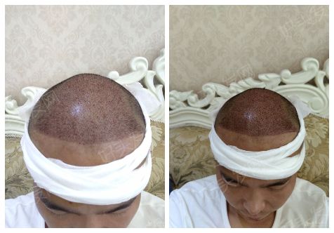 下楼吃了饭,在大厅玩了会就休息去了,晚上九点半入睡时头疼的厉害,吃了两片镇痛药不知道啥时候睡着的。手术后第一天白天没啥事,就有点疼,2号晚上开始到5号白天那是叫有氧又疼,既不能摸,又不能抓,那叫一万个难受,植发后的第三天开始洗头,用香波喷雾植发区和取发区,摸上去感觉是硬硬的,没感觉,术后第六天效果,取发区效果。感觉好像有那么长了一些。