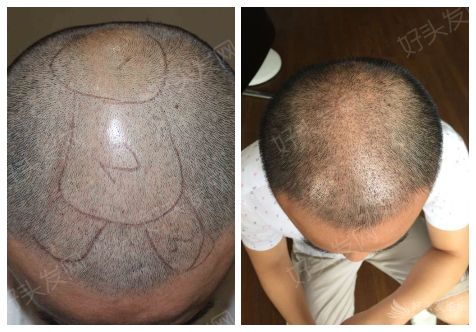 7月26日,一大早我起床去吃了早餐,然后就在一楼的大厅等待了,说不紧张都是假的,这也是我人生的第一台手术。朱医生过来了,然后就给我做术前准备,设计植发区域,因为我怕疼,朱医生还特地给我头皮上抹了一些麻药,说是进针的时候就没有那么疼了,我说我很害怕,朱医生还给我吃了两片安定片,舒缓我紧张的情绪。做好这些,都已经9点了,然后朱医生拍完照留证后就把我送进了手术室。换好衣服进去后,手术室所有的工作人员都已经在等待了,整个手术团队有六七个人吧。我躺在手术台上,然后主任开始打麻药,不得不说其实整个手术,打麻药才算是较痛的,因为采用的是局麻,一针只能麻醉一小块,取发区打了大约十来针,开始那几针是较疼的。主任一边打麻药,旁边有个助手就一直用手轻轻的拍打你,安抚你。打麻药的过程持续了大约10分钟左右吧,打完后主任用针在试探,看是不是有没有麻醉到的地方,确认好所有要取发的区域全部麻醉成功后,就开始取发了。因为俯卧的原因,我没有看到她们所采用的工具,但是给我的感觉好像是用钻头先钻一个洞,然后再用镊子把毛囊夹出来这样子。这个过程也很难熬,你一直保持着清醒,然后人家用钻头在你头上一直不停的在打洞,虽然一点都不痛,但是总是感觉怪怪的。从早上九点半左右进的手术室,大约到将近一点吧,整个取发过程才结束,又开始打麻药,给植发区打麻药,之后开始了手术的最后一项,种植毛囊,从下午2点钟,一直种植到下午4点多,手术终于结束了。