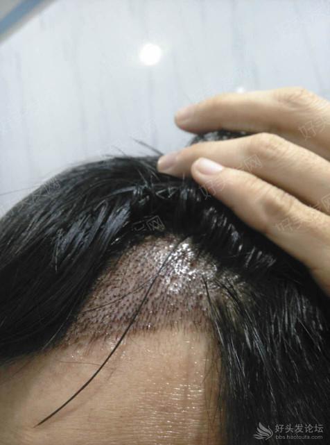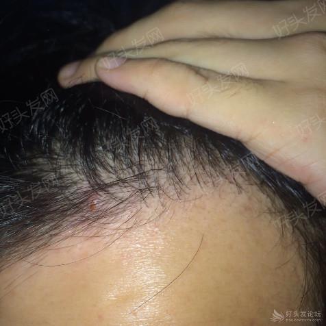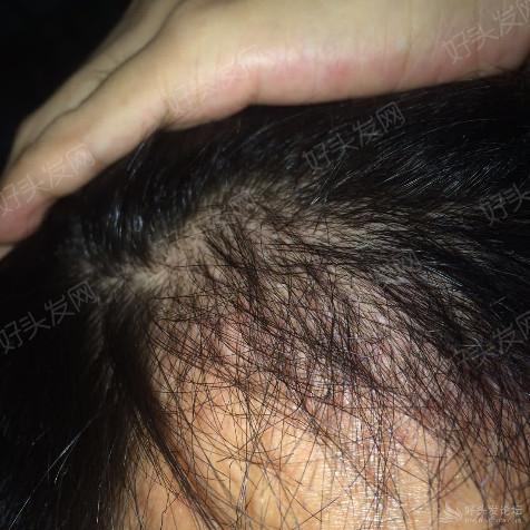 第九天清理血痂,自己慢慢洗的,就怕不小心把头发碰下来,有条件的发友还是去医院清洗比较好。