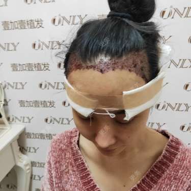 复诊时,在医院洗了头,残留的血痂都脱落了,医生说移植的毛囊成活率还不错。