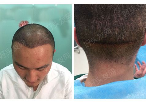 自己拿推头发的铲子把头发推了就是不喜欢留长没办法对后面有点小看法 建议如果发友也跟我一样的且你也不喜欢留长的话要跟医生强调一下开刀的地方附近不要取得那么稀 看起来刀疤就太明显了术前我没注意现在头发一推结果就这样了