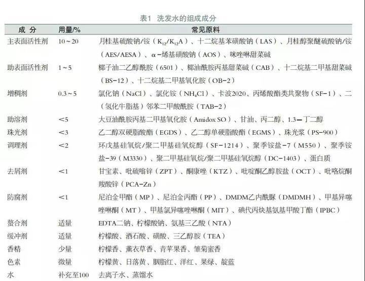一般洗发水的构成部分:水 表面活性剂 调理剂 防腐剂 香精 功能性成分