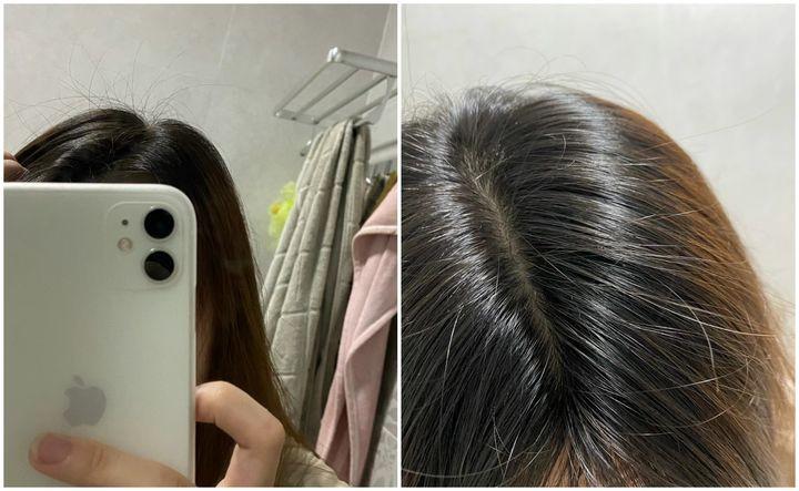 整体的发量多了很多,对着镜子自拍能看出来,头发明显和之前不一样了。