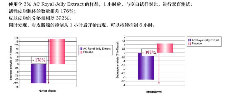 蜂王浆控油因子:非常安全的原料,对人体的刺激性几乎为0,其中的10——羟基癸酸具有独特的控油效果,见下图——