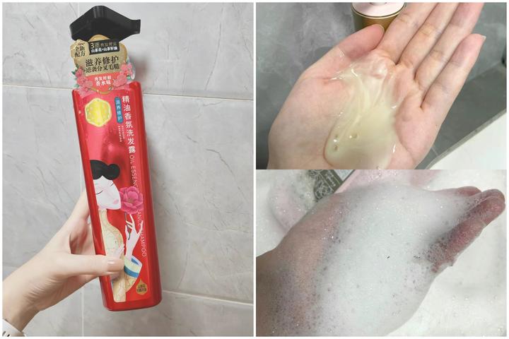 洗发水是硅油配方所以一建议是搭配护发素一起用。质地是透明的液体,流动性挺好的,而且泡沫绵密。