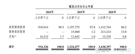 雍禾的收入主要来自提供植发医疗服务