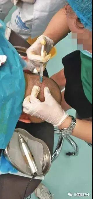 由于每次提取都会有血液溅出,需要不时地擦掉患者头部的血液。4个多小时后,4名学员在这位患者的头部一共种植了约200根头发。