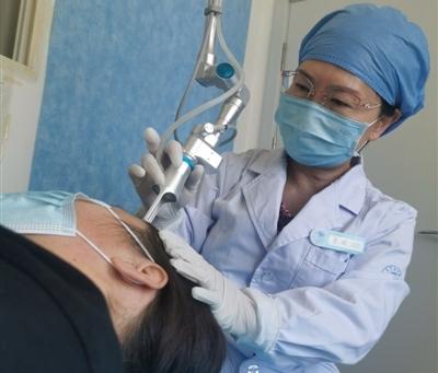 李颖用点阵激光为患者治疗斑秃。