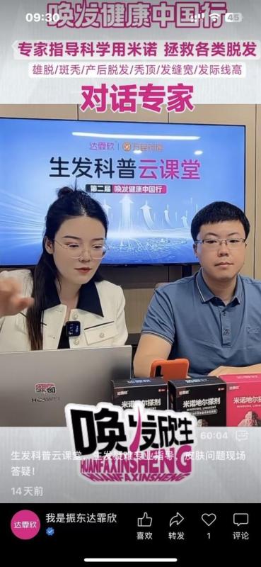 为了更深入地普及毛发健康知识,提升公众对毛发问题的认知水平,振东集团达霏欣精心策划并启动了“唤发健康中国行”系列云直播活动。这一创新举措旨在通过线上直播平台,将专业的毛发学知识传递给公众,让更多的人能够了解到毛发健康的重要性。