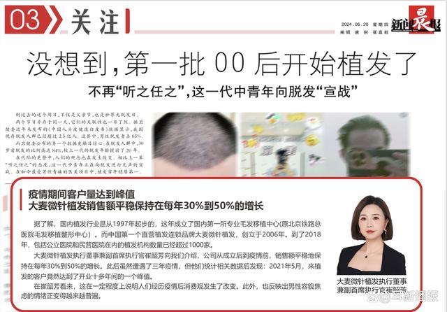 通过本次采访,崔韶芳女士不仅为我们揭示了脱发问题的严峻性和植发市场的现状,同时也展示了大麦微针植发在解决脱发问题方面的专业能力和技术优势。随着毛发行业的不断发展和消费者对于个人形象的日益重视,大麦微针植发将继续秉承专业、创新的理念,为广大患者提供更优质的毛发健康管理服务。