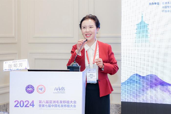 中国整形美容协会毛发医学分会会长、大会主席和组织委员会主席、杭州市第一人民医院医疗美容科主任张菊芳教授分享了在毛囊生命周期方面的研究成果,并提出将基因编辑猪的器官移植技术应用到毛发移植领域的新思路。张菊芳教授对于极具口碑的丝丽小红帽寄予厚望并提出了更高要求。张教授也希望未来丝丽小红帽能够为更多患者服务,造福毛发健康行业,让精细化的毛发养护成为大众的日常生活习惯。