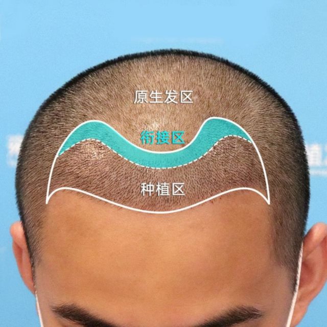 衔接区:植发区与未种区之间的过渡带,由原生发和新种植的头发组成,保障术后整体外观协调自然,完美融合。