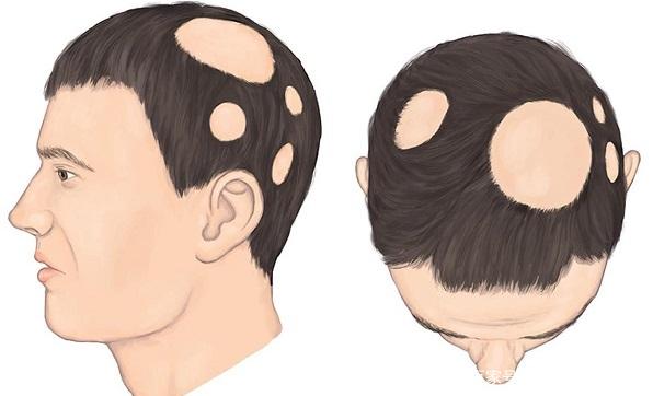 4、斑秃特征是块状脱发,精神压力大、短时间内就出现脱发现象,不疼不痒。