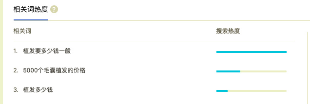 ▲百度搜索指数显示,价格是植发的热搜词图片来源:百度指数