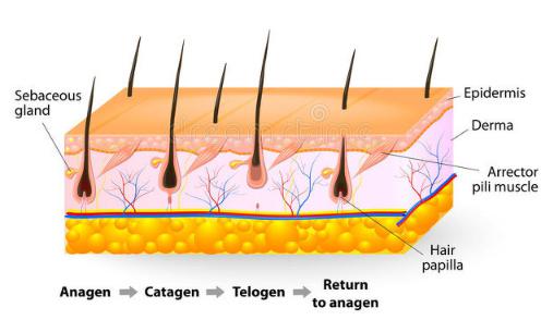 在头发的正常生长生命周期内,所有的头发毛囊会以不同的速度更新,头发的生长是一种连续的过程,可以分为三个不同的阶段。