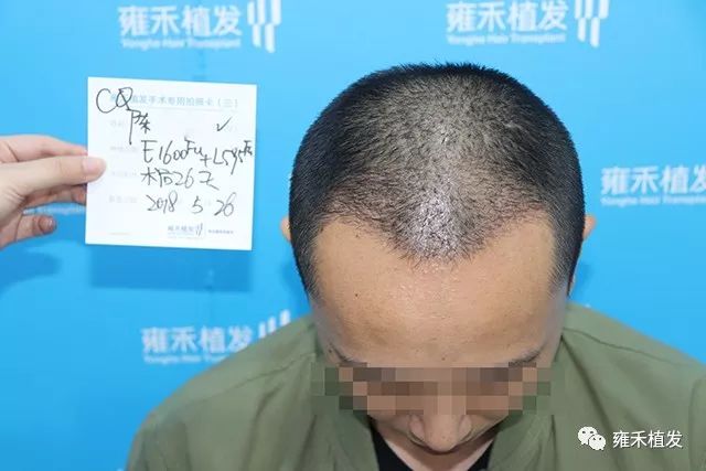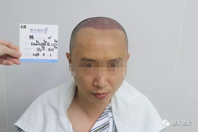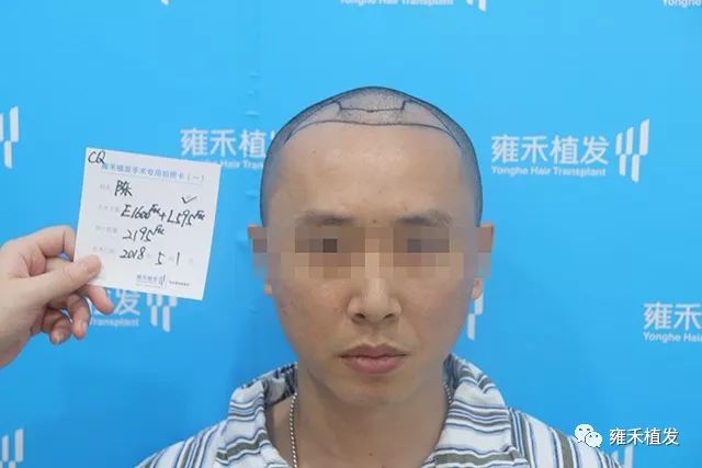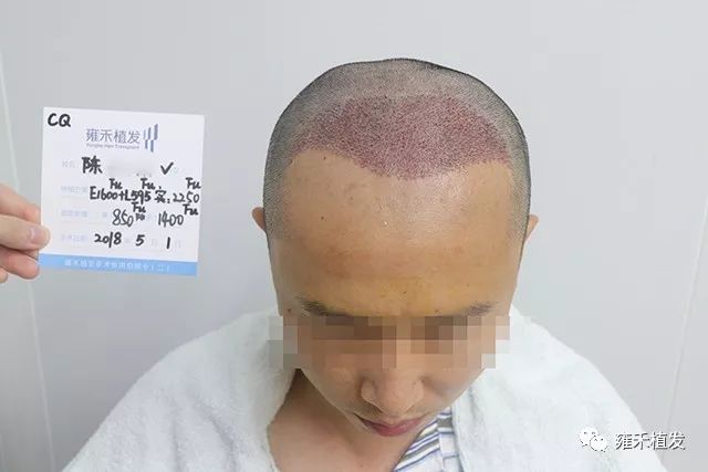 2018年5月1日,重庆雍禾为陈先生种植2250单位,含单根头发的毛囊单位850,含多根头发的毛囊单位1400,以FUE种植为主,LATTICE只种植了600单位,也就是发际正中往后的一点稀疏区。空白区你怎么种都不会伤害原有头发,稀疏区种植不合适容易伤害一些毛囊,而雍禾的点阵技术是V型种植终端,即插即种即拔不伤害原有毛囊。植发手术是局麻状态下进行的,整体是不疼痛的。