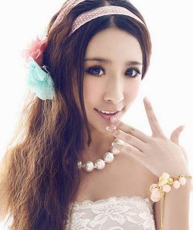 玉米须烫发发型与长头发的搭配中,给女生带来的风格也是十分明显的。女生中分侧梳玉米须烫发发型,将眼角的头发顺着脸颊梳到侧边,烫发发型用了花饰点缀在侧边就好。