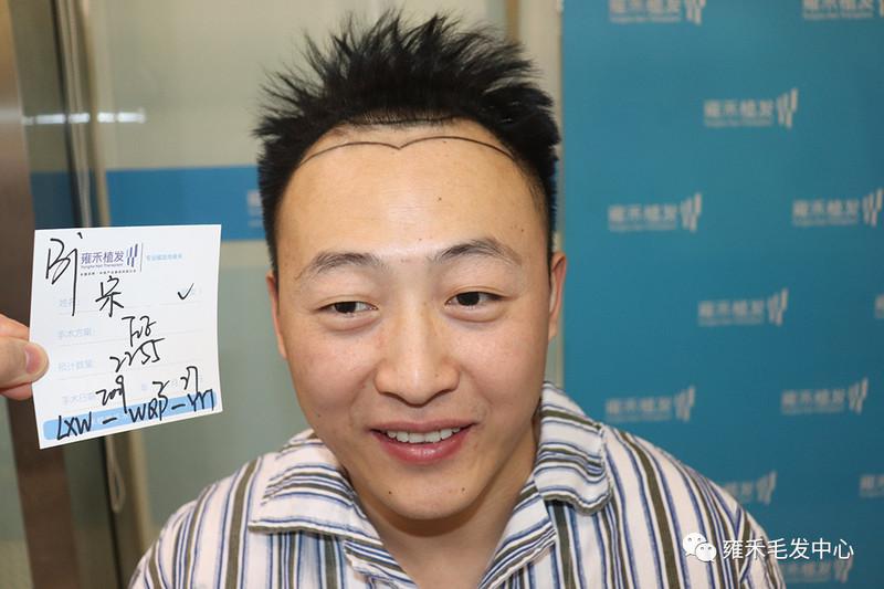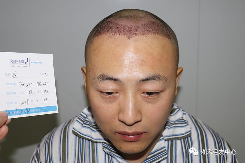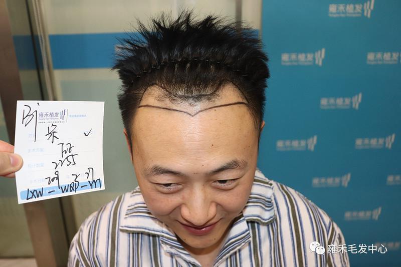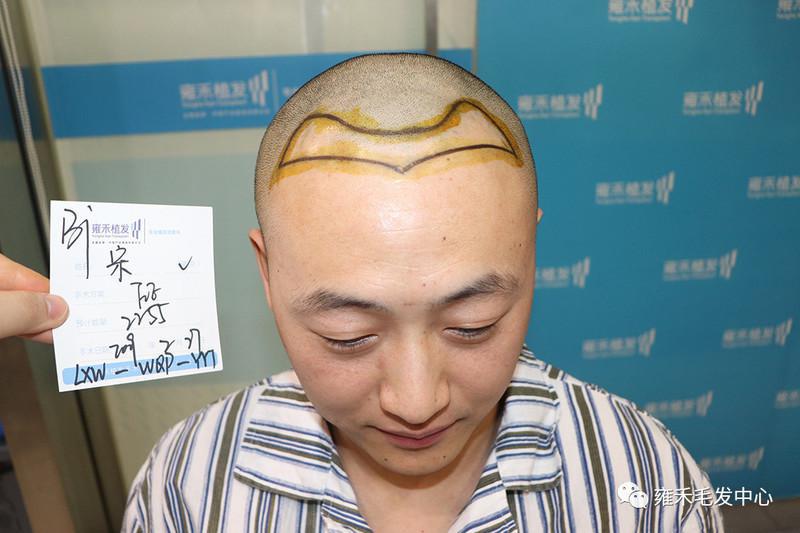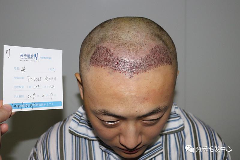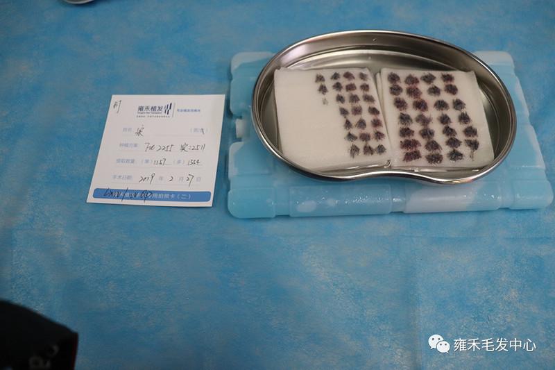 2019年2月27日,北京雍禾采用FUE为宋先生种植2511单位,含单根头发的毛囊单位1157,含多根头发的毛囊单位1354,本来术前预估种植2255,结果多取种256单位。种植密度是55。手术从上午10点30到下午3点。